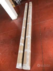 Le singole doghe sono alte 300 cm (si tagliano in base all’altezza da coprire), spessore 2,5 cm, ho 11 doghe con le quali si copre una larghezza di 108 cm (come in foto). Le doghe sono nuove e ancora imballate nel cartone originale.