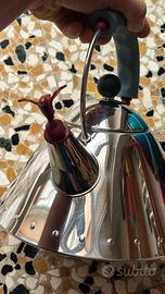 Bollitore con fischietto a forma di uccellino. Creato nel 1985, ancora oggi oggetto dal design attuale. Acciaio inossidabile 18/10, con manico e fischietto in PA azzurro chiaro. Mai utilizzato ma senza scatola originale