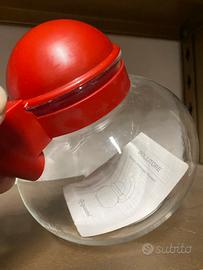 Bollitore dal design moderno e accattivante, perfetto per la tua cucina. La sua forma sferica lo rende un oggetto di arredamento oltre che funzionale. - Realizzato in vetro trasparente e plastica rossa. - Manico ergonomico per una presa sicura. - Coperchio a cupola.mai usato. Solo scatolo non e' in perfette condizioni. Come da foto