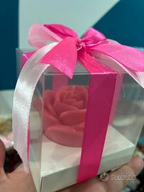 Bomboniera con all interno candela profumata a forma di rosa grandw