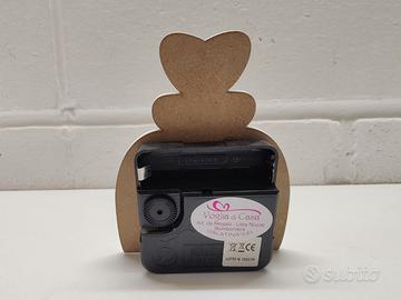 E’ un orologio da tavolo realizzato in legno che funziona a batteria (non inclusa)