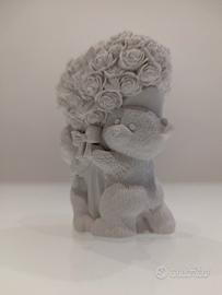 Statuina artigianale in gesso ceramico di alta qualità, dal design romantico e curato nei dettagli. Raffigura due teneri orsetti che sorreggono un bouquet di roselline. Gli orsetti, abbracciati dolcemente, tengono stretto un fiocco sul davanti, simbolo di legame e affetto.