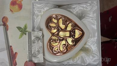 Bellissima bomboniera a forma di cuore, in condizioni perfette, mai usata e senza segni di usura.Dotata di: • luce integrata • funzione profumatore per ambiente • design elegante, ideale come decorazione o regalo.Completa di scatola originale