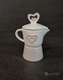 Bomboniera in porcellana a forma di caffettiera zuccheriera.