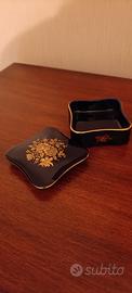 Bomboniera in porcellana blu, véritable bleu de four, con finiture e decorazioni dorate. Oggetto vintage, in ottime condizioni. Dimensioni indicative 10x10 cm altezza 4cm.