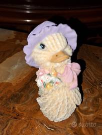 paperella con cappello e mazzo di fiori questa bomboniera/soprammobile vintage deglj anni 90,raffigura una paperella in resina ben lavorata nei dettagli dimensione 8x3,5x3,5cm quantità:piu pezzi a disposizione comprende scatolina e pluribol di protezione
