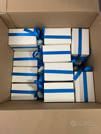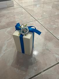 Sono tutte inscatolate singolarmente come in foto, altezza della bomboniera circa 12 cm, ci sono 3 varianti casuali.