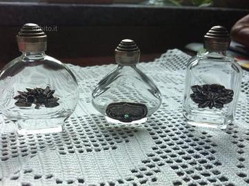Porta profumi in cristallo marca "Acquachiara"linea anni '80 con forma rotonda, rettangolare e a goccia. Al centro incastonata pietre originali smeraldo , rubini e zaffiro. Ideale per cerimonie ( battesimo, cresima, comunione, etc...) pezzi disponibili 120 circa. Per qualsiasi info contattatemi al nr. 3293250278