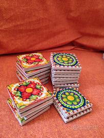 Calamita in ceramica 5x5 resistente e dai colori vivaci. Sul retro il magnete ricopre l'intera superficie della mattonella.