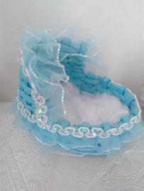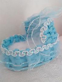 Sono già disponibili per essere acquistate è spedite 26 culle celesti, piccole è grandi, fatte completamente a mano, per ogni evento, per maschi, come bomboniera-porta confetti.