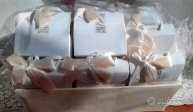 Causa rimanenza,vendesi 10 bomboniere comunione/cresima. Le bomboniere sono già confezionate singolarmente, comprese di confetti e riposte nel contenitore per poterle trasportare. (ci sarà da cambiare il bigliettino dentro). Disponibile sia per la consegna a mano, che per la spedizione. Per info scrivetemi.