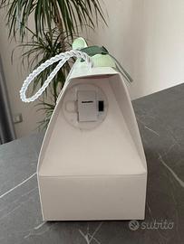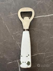 Come potete vedere, si tratta di un apribottiglie con decorazioni foglie e manico bianco di 12 cm in porcellana inserito in una shopper elegante che riprende la decorazione floreale, con nastro dai toni del verde e che si può illuminare! All’interno ovviamente trovate il sacchettino con biglietto e confetti (ovviamente nel caso da sostituire).