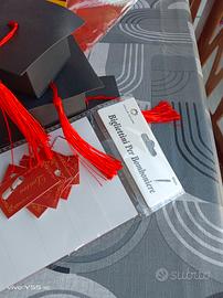 bomboniere in cartoncino per laurea, completo di festoni, libro per gli amici spara coriandoli ecc. mancano solo i confetti. 49 pezzi