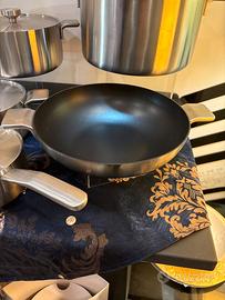 Per chiusura attività elimino set pentole linea Bones design Giulio Iacchetti di Alessi il set è composto da casseruola a due manici 24 cm casseruola due manici 20 cm, padella manico lungo 24 cm, casseruola a manico lungo 16 cm, coperchio 24 cm, coperchio 20 cm, coperchio 16 cm, wok cm 28, casseruola a due manici centimetri 28, padella a manico lungo centimetri 28. Il tutto in perfetta condizioni è con imballo originale le caratteristiche sono acciaio 10 volte più durevole riscaldamento tre volte più veloce manici cavi ergonomici in acciaio inossidabile per ridurre il calore distribuzione uniforme del calore superficie antigraffio induzione completa 360° inviolabilità degli elementi coperchi disponibili per tutte le misure materiali tri lamina di alluminio e acciaio inossidabile è un ottimo conduttore di calore e garantisce la massima coefficiente adatto alla cottura con tutte le fonti di calore pantani Umm è il primo e unico rivestimento antiaderente al titanio dotato di strati muti a prestazioni migliori rispetto rivestimenti tradizionali per resistenza graffi e abrasioni all’usura. Il prezzo di listino della batteria completa è di 1200 € io la propongo al prezzo scontato di 600 € con spese di spedizione a carico dell’acquirente. Il prezzo non è trattabile..