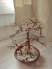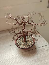Carinissimo bonsai fatto con fili di rame, con basamento di ciottoli in vaso