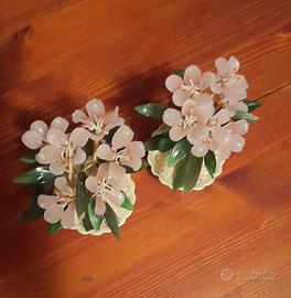 Bonsai in giada cinese con fiori rosa cipria. Altezza circa 16cm.