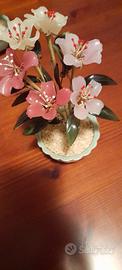 Bonsai in giada cinese con fiori color rosa, bianco e rosa cipria. Altezza di circa 16cm. In condizioni eccellenti.