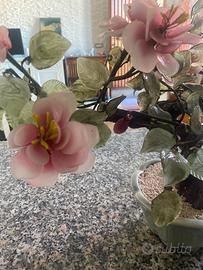 Bellissimo bonsai in vetro giada cinese. Oggetto artistico ereditato, che rappresenta un ‘ Ciliegio in fiore ‘, vintage.