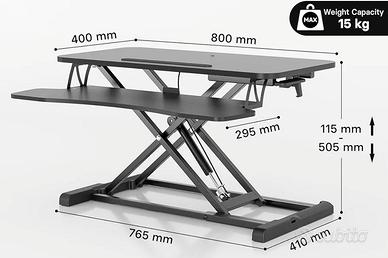 vendo tavolo per lavorare in piedi regolabile. Compatibile con una normale scrivania carico fino a 15kg larghezza 80 cm altezza regolabile da 115 a 505 mm NO SPEDIZIONE