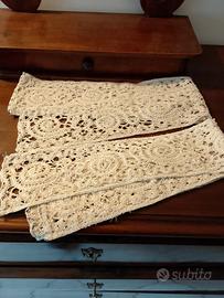 Bordure fatte a mano primi 900. Ogni striscia lunga cm. 180 circa. Un modello composto da n. 2 alte cm.12,5, un altro modello di n. 2 alte cm.25 , n.6 alte cm. 12,50.