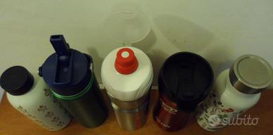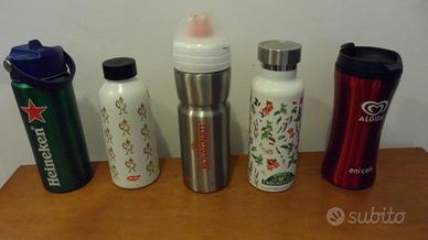 5 borracce termiche NUOVE mai usate, 4 in acciaio, ed 1 (quella Rossa) in plastica, con tappi avvitabili, brandizzate- Vendo per non utilizzo, ad Euro 15 cadauna, o tutte ad euro 60- Preferisco il ritiro diretto- Astenersi perditempo- Tutto come da foto B- cl 50, e più