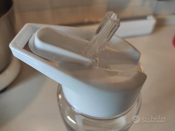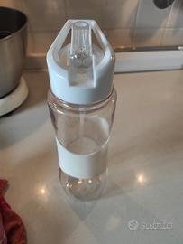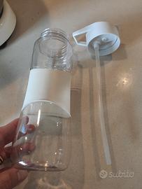 Borraccia con cannuccia 750 ml senza BPA. Nuova. Completamente smontabile per una facile pulizia. trasparente. Completo di scovolino per la pulizia.