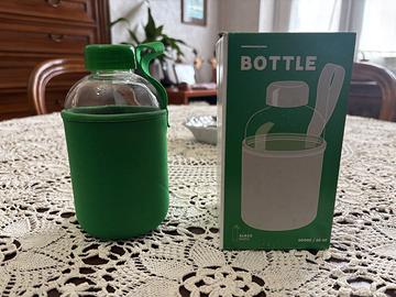 Borraccia in vetro capacità 600 ml, con fodera protettiva per bevande calde e fredde.