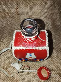 Borraccia di origine della ex Jugoslavia, in vetro e con rivestimento tipico. Altezza 16,5 cm, larghezza 8 cm circa. Volendo, la si può usare tranquillamente (consiglio un tappo aggiuntivo, nel caso la si dovesse trasportare piena).
