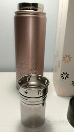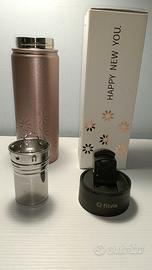 Borraccia termica Fitvia in acciaio inossidabile,colore bronzo , 500 ml, con colino per tè e tisane,mantiene le bevande calde e fredde.