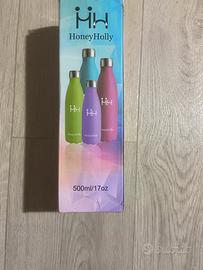 Borraccia termica da 500 ml del marchio HoneyHolly, realizzata in acciaio inox 304 per uso alimentare, senza BPA, ftalati o sostanze tossiche. Ideale per mantenere le bevande fredde fino a 24 ore e calde fino a 12 ore, grazie alla tecnologia di isolamento a doppia parete.