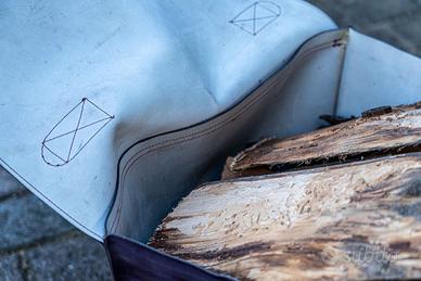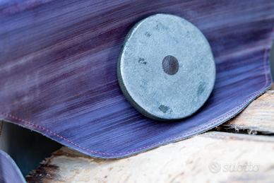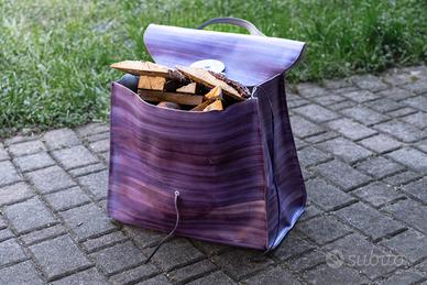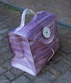 Vendo elegante borsa di design in cuoio rigido di colore viola, ideale come porta legna da camino o stufa.
