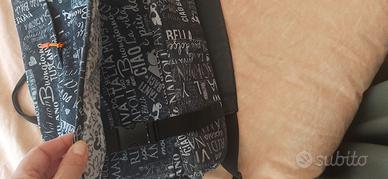 ampia, comoda e leggera borsa/cartella portadocumenti/computer . si porta a tracolla o con la maniglia. molte tasche e due con zip. buono stato, solo piccola scucitura sulla piega interna.