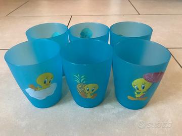 Borsa termica azzurra con set 6 bicchieri, ognuno decorato con Titty in posa diversa Colore di sfondo azzurro. In ottime condizioni (vd. immagini).