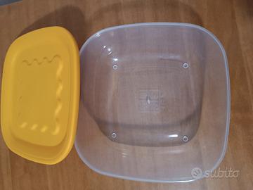 Set Borsa Termica Guzzini con Contenitore Salvafreschezza. Colore giallo ocra. Misure: Borsa 22 x 18 x h22 cm, Contenitore 19.6 x 19.6 x h7 cm, 1400 cc.