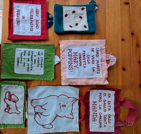 vendo bavaglini per neonati, presine,tende,copri forno,borse porta cellulare,ecc