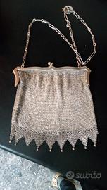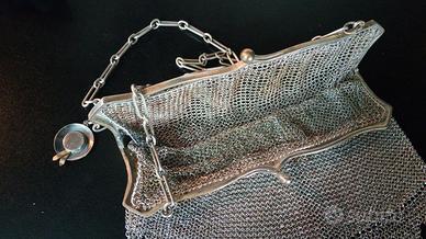 BORSETTA ANTICA da teatro A RETE in argento 800 PRIMI 900. Insieme sulla catena vi è un ciondolo a forma di cappello in argento