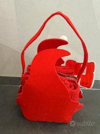 Idea Regalo Natalizio, borsetta gnomo con set di 3 strofinacci in cotone.