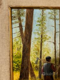 Boscaiolo olio su tela 35,5x30cm - 1970
