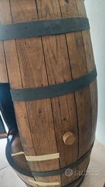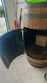 questa botte è sta presa grezza , è stato intagliato uno sportello con cerniera e chiusura con barra interna e pomello esterno, all interno et stata lavorata e rivestita , ricavato un vano per bottiglie di ogni genere applicabile luce interna , e al centro è stato ricavato un vano quadrato a scomparsa , usava veramente poche volte per chi non volesse l ampolla si possono svitare i ganci in alto che la rendono sicura . a disposizione per varie ed eventuali