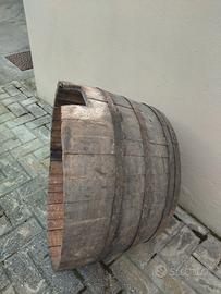 -Vendo mezza botte da arredo. Lo stato di conservazione generale è buono. Sono presenti normali segni del suo vissuto. Misure: Diametro alla base 81cm. Diametro sopra 65cm. H 47cm. Prezzo: 130€