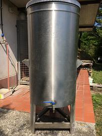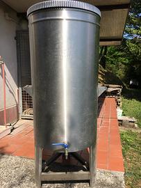 Botte in acciaio inox completa di piedistallo, coperchio, galleggiante e rubinetto Capacità 200 litri Come nuova, usata una sola volta