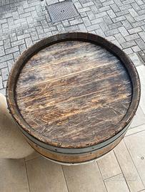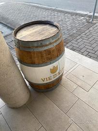Vendo botte in legno con cerchiature in metallo, personalizzata con logo Vie D’Alt.