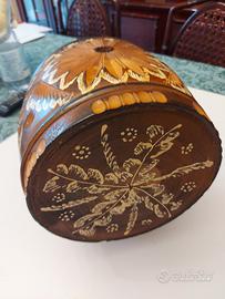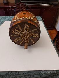 Botte in legno vintage 26x28x25 intarsiata e dipinta a mano . La botte non è più idonea per contenere liquidi ma solo da esposizione