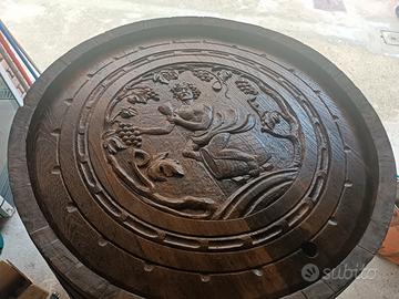 La Botte risale anni 1970 decorata con splendida scultura a tema vinicolo dal famoso Scultore nato 1910 Nello Sofia come da firma e anno apposto sotto l'opera (locandina Scultore allegata).