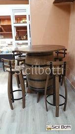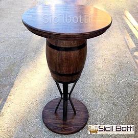 Botti tavolo realizzati con botte in legno di rovere, possibilità di personalizzare le botti con incisione a fuoco, misure e colori.