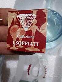 meravigliosa bottiglia di grappa con sei bicchieri in vetro soffiato a bocca " i preziosi" collezione e soffiati made in Italy creazione artigianale, il tutto perfettamente integro