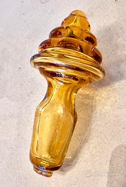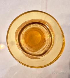 Splendida bottiglia decorativa Déco in vetro giallo di Murano soffiato a bocca. Prodotta in Italia probabilmente negli anni '30. In condizioni favolose, senza scheggiature o crepe. Questo oggetto elegante e unico (come ogni oggetto soffiato) è incredibilmente affascinate grazie alle linee sinuose e al vibrante vetro giallo. Misure: altezza 23 cm (con il tappo) diametro alla base 10 cm