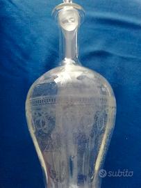 Bottiglia lavorata con Tappo di cristallo + un Barattolo di vetro vendo a prezzo da regalo di 10 euro .Inoltre.vendo 6 Bicchieri lavorati ,di cristallo, senza rotture o scheggiati ,come nuovissimi .a 10 euro .