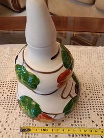 originale bottiglia cinese dalla forma di zucca in ceramica lavorata con fiori.
