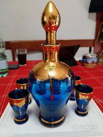 Completo bottiglia e bicchieri comprato a Venezia 28 anni fa in fabbrica di murano azzurro e oro